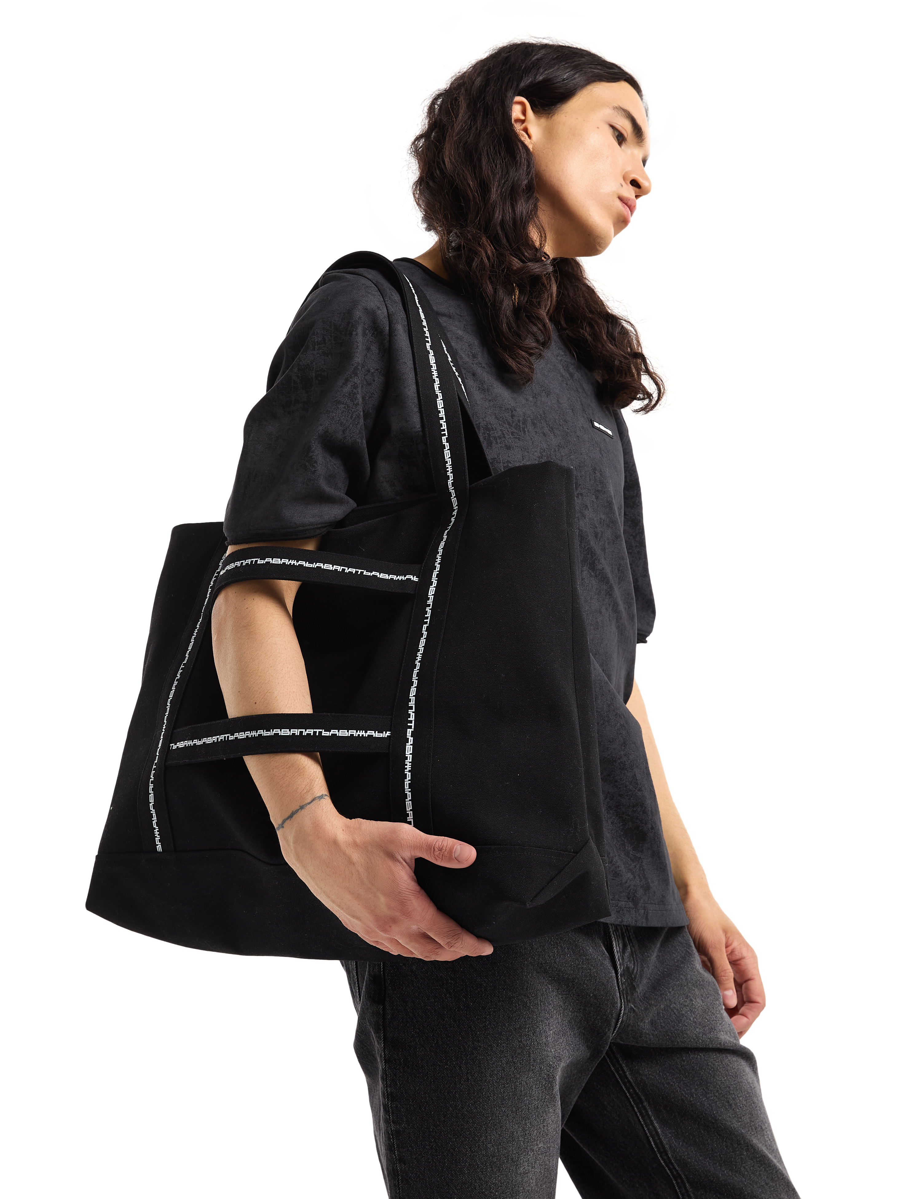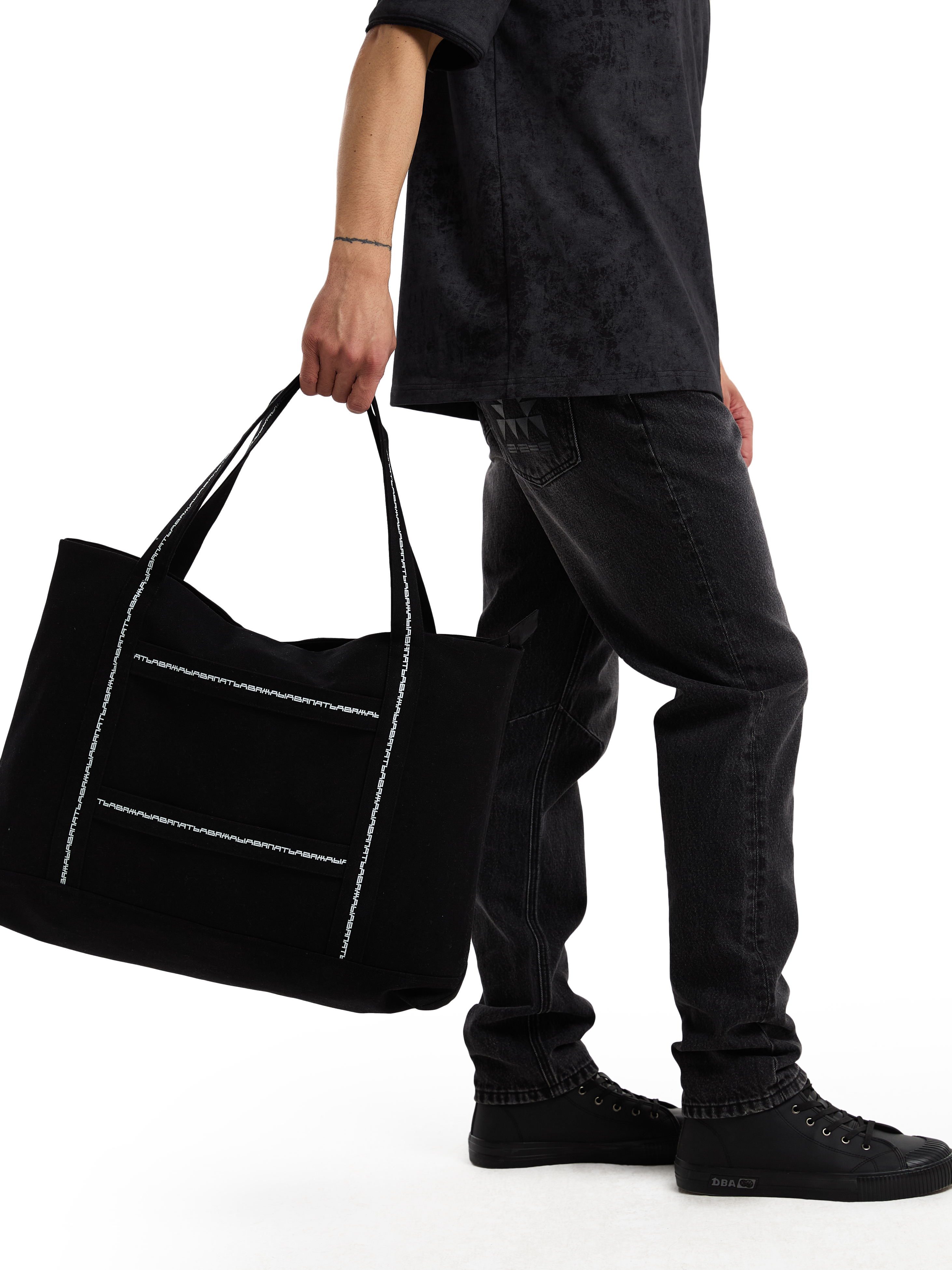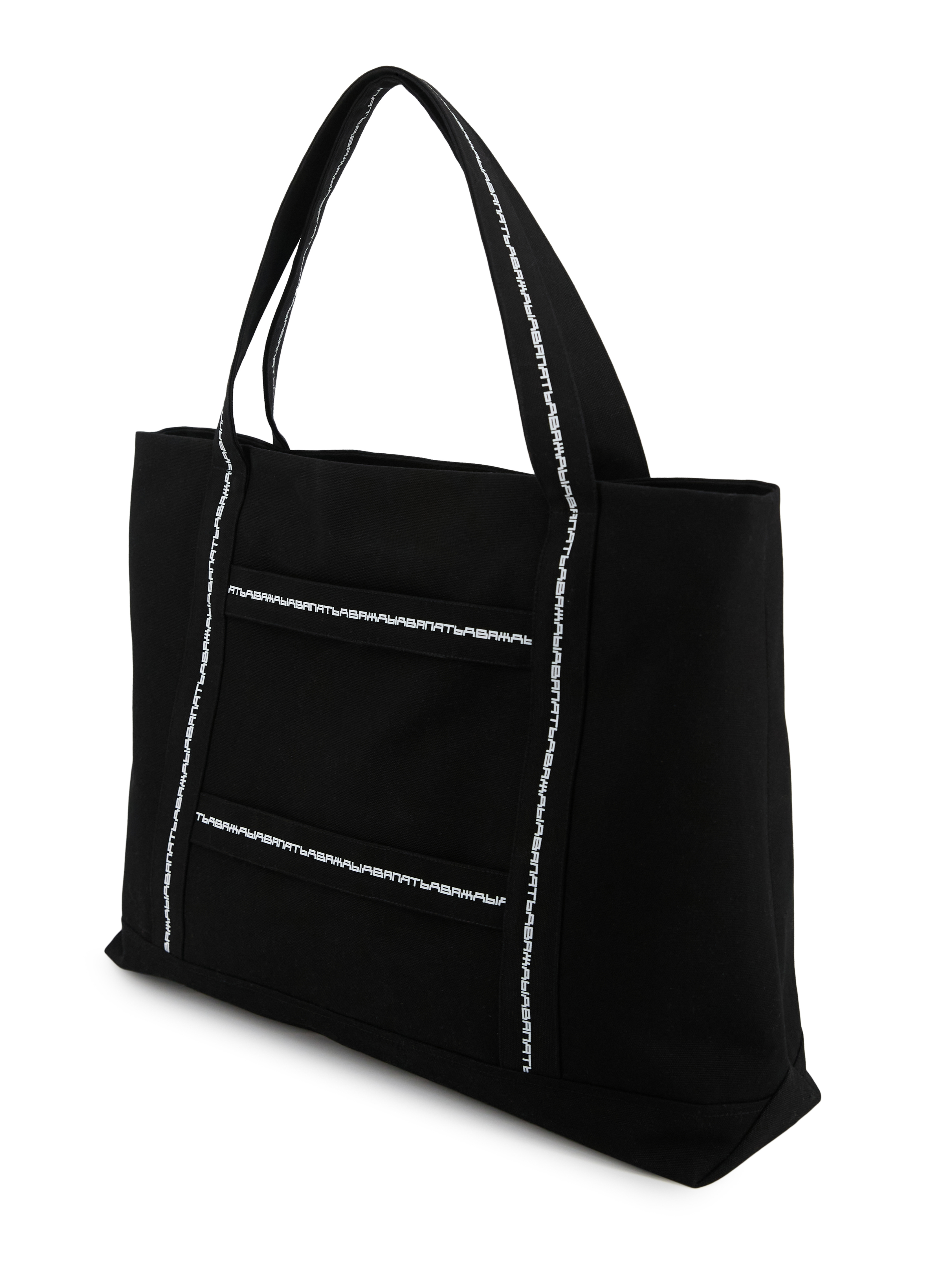 Сумка-мешок с внутренними отделениями на молнии и дополнительными горизонтальными брендированными ручками. Черная. 100% полиэстер. 290 грамм.