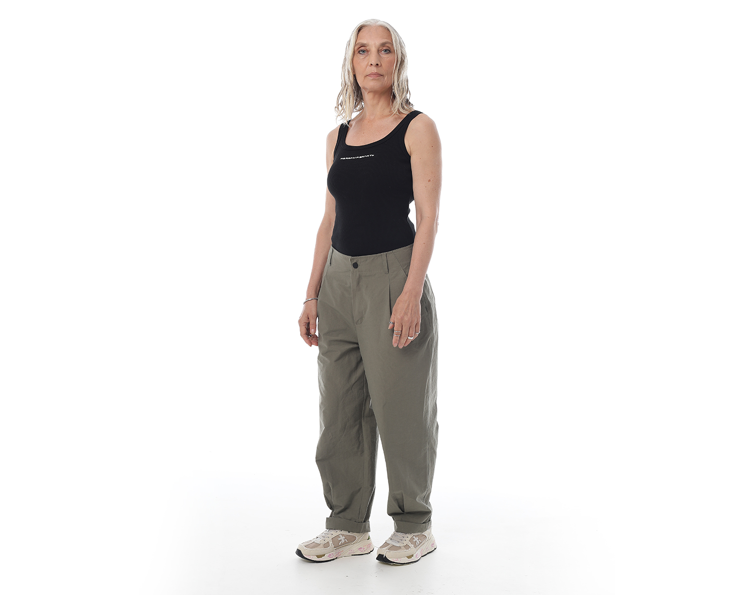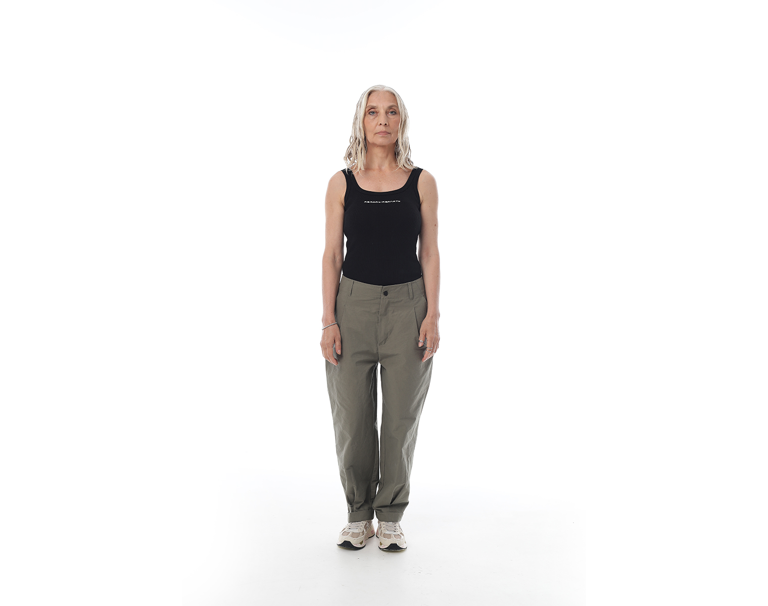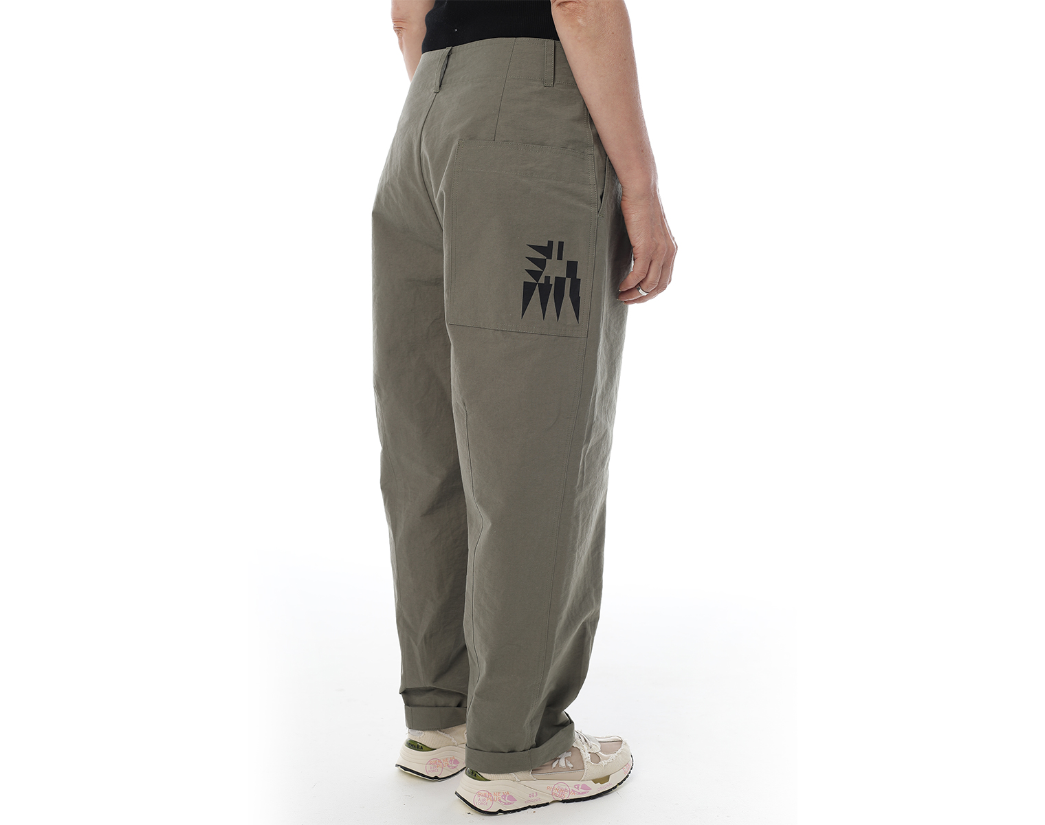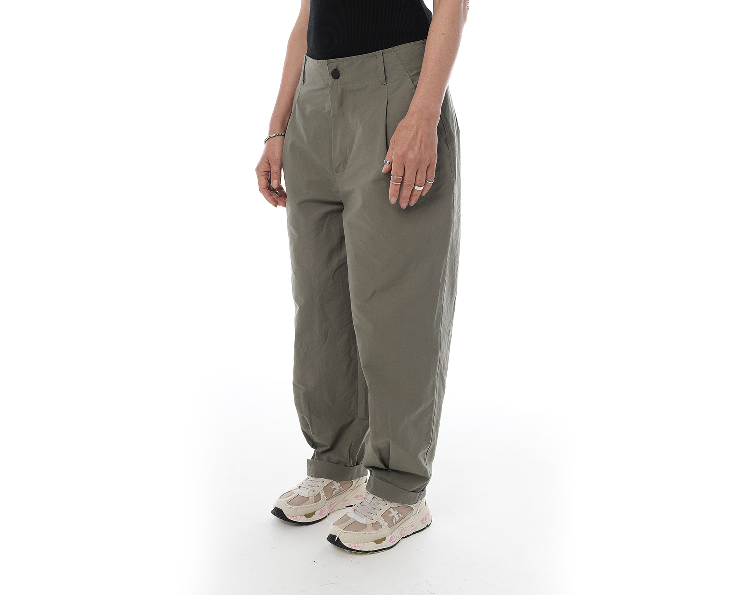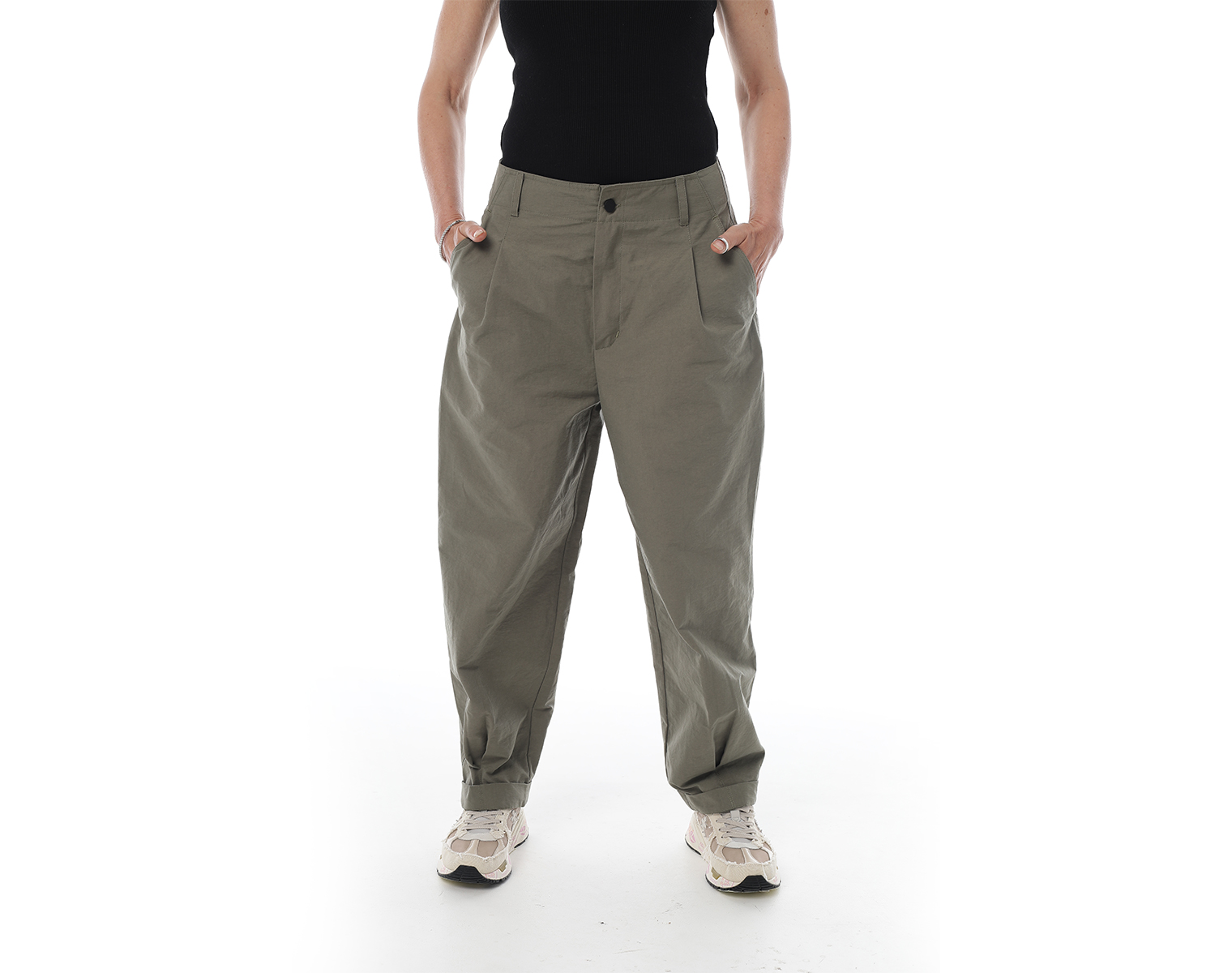 Брюки "карго" на поясе и застежкой на молнии спереди, с двумя боковыми карманами и одним накладным сзади, внизу брючины оформлены на защипах с фиксированным подворотом. Мидлфит. Хаки. Состав ткани: 100% хлопок, 220 грамм.