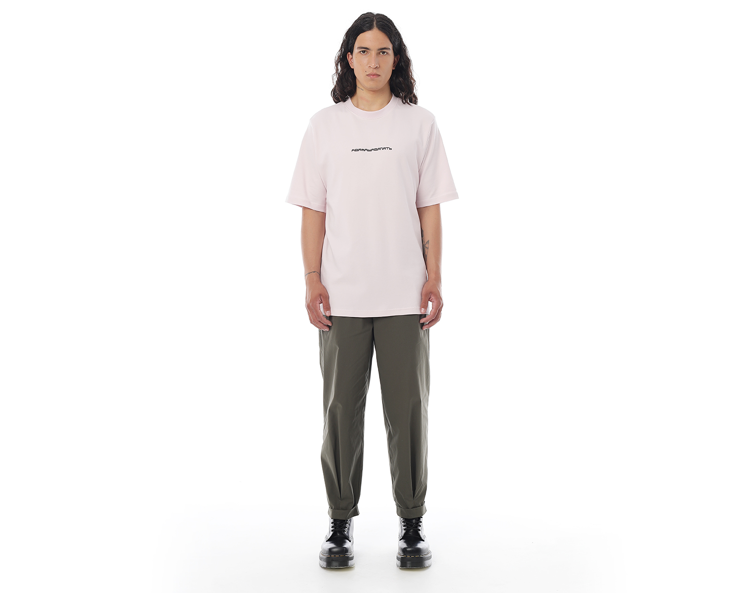 Футболка. Бледно-розовая. Посадка мидлфит. 100% хлопок, плотность 180 грамм.  Объемный принт "дваждыдвапять" в технике высоко-рельефной печати flextran.