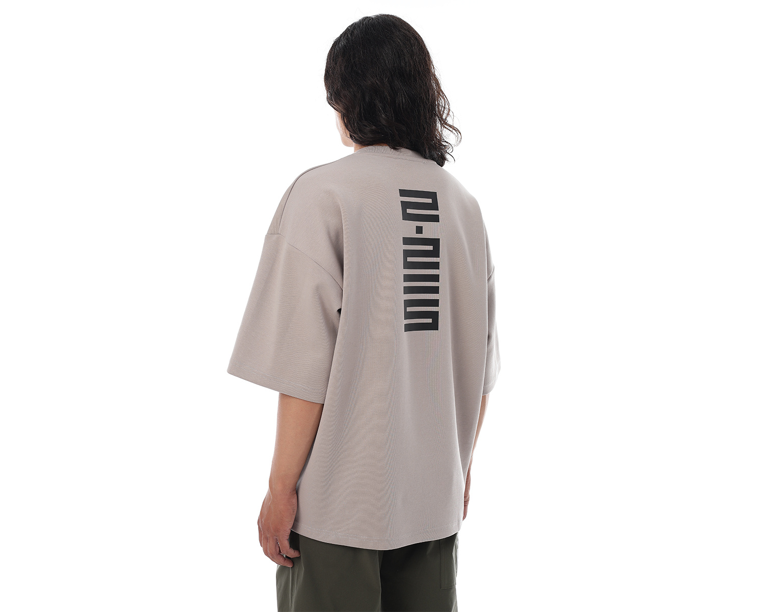 Футболка. Серо-бежевая. Посадка оверсайз. 85% хлопок 15% полиэстер, плотность 180 грамм. Модель декорирована печатью в технике DTF.