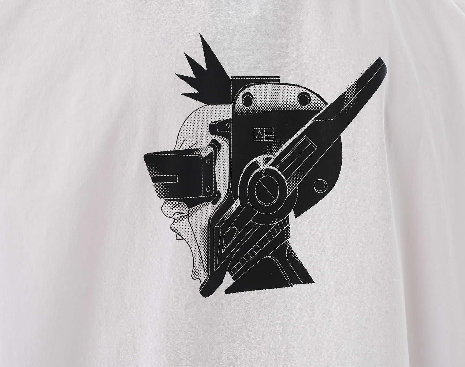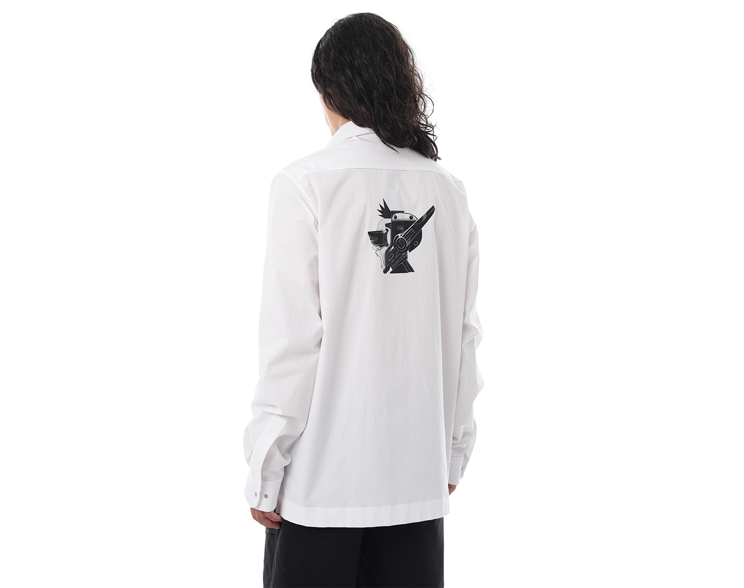 Рубашка с длинными рукавами на манжете и нагрудными карманами. Белая. Мидлфит. Модель декорирована печатью в технике "DTF". Состав: хлопок 97 % спандекс 3% 105 грамм.