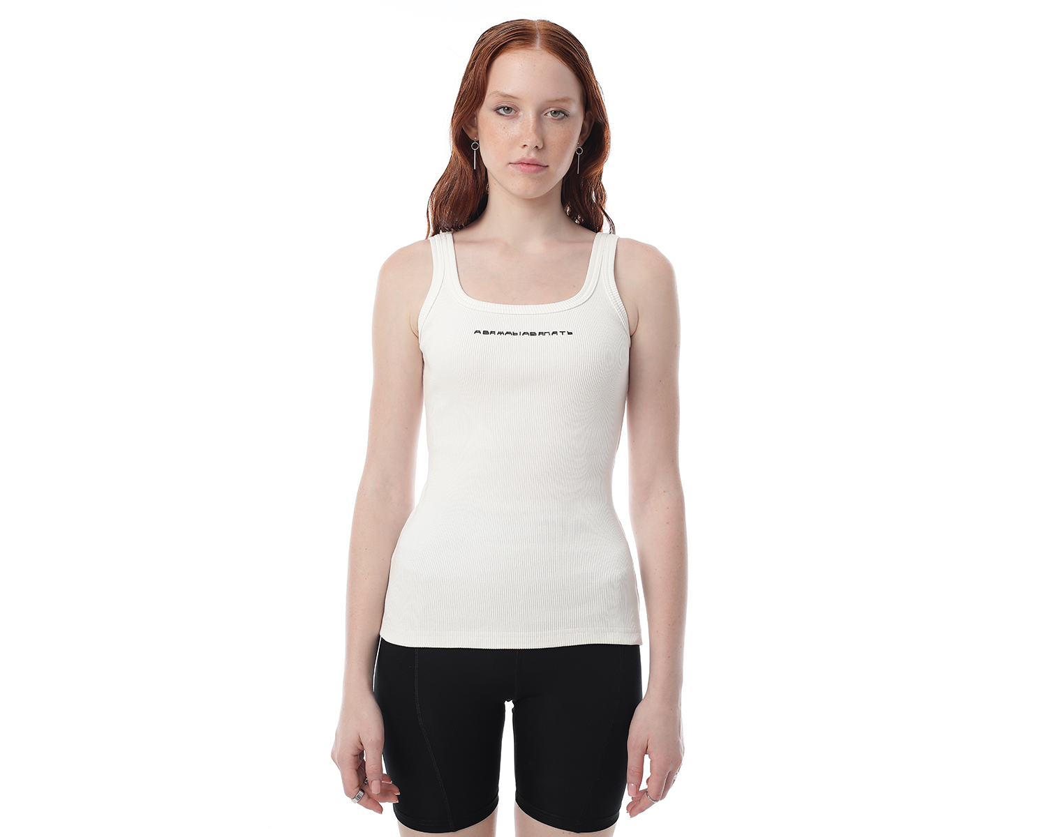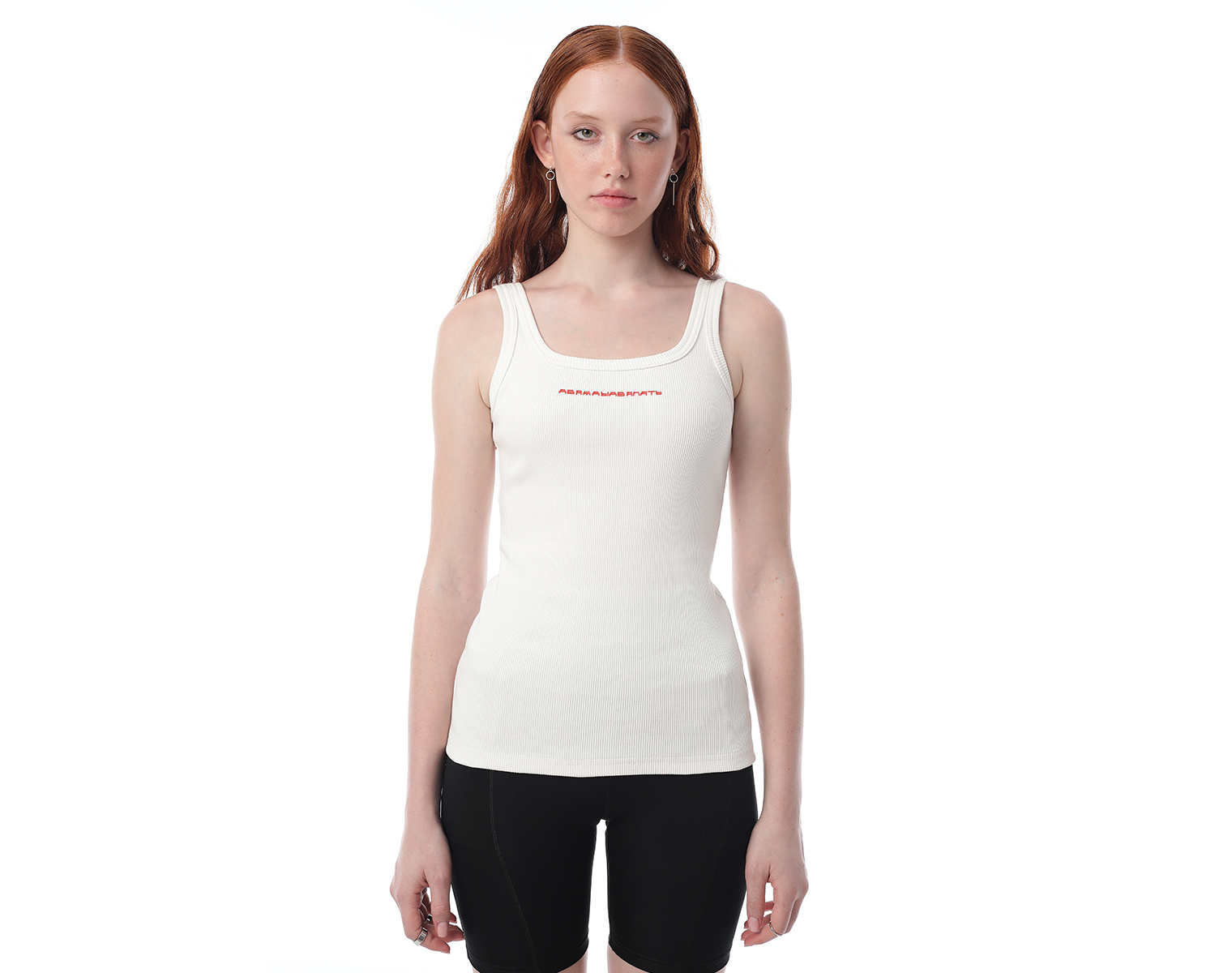 Майка женская молочного цвета из кашкорсе. Слим. 95% хлопок 5% эластан. Объемный принт в виде буквы "Д" в технике высоко-рельефной печати flextran. 420 грамм.